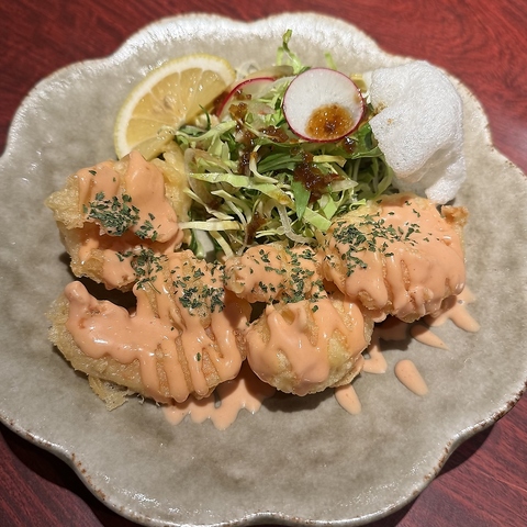 外はサクッと揚げた衣と、中はジューシーで柔らかい若鶏肉が絶妙なバランスを生み出します。一口食べれば、香ばしい香りと濃厚な旨みが口いっぱいに広がり、幸せなひとときをお届けいたします。お酒のお供にぴったりの一品です◎
