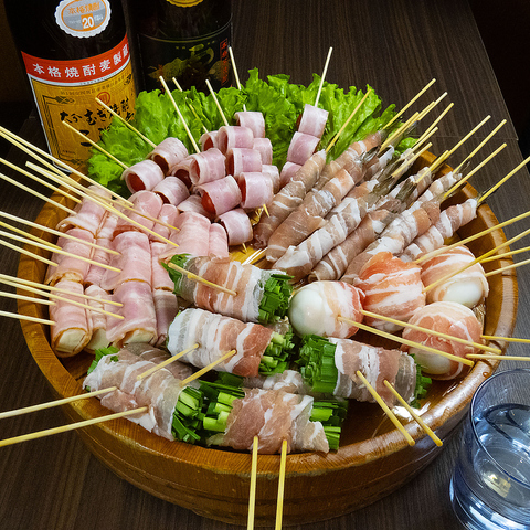 1本1本手打ちをし、鳥の美味しさを引き出した「焼鳥」が当店のイチオシです!女性に人気の「トマトベーコン巻き」や「ニラ豚巻」など、お肉と野菜のハーモニーを楽しめる創作巻物串や肉肉しさを感じられる牛串など、ぜひ大分の地酒とあわせてお楽しみください!