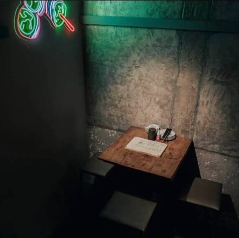 間接照明が灯る落ち着いた雰囲気の中、名物の肉巻き串や炙り肉寿司を味わいながら、会話も自然と弾みます。記念日や誕生日など、大切なひとときにおすすめの人気席です。