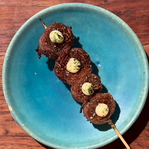 名物の肉巻き串は、備長炭で一本一本丁寧に焼き上げ、香ばしさとジューシーさを最大限に引き出しています。