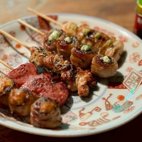 名物の肉巻き串は、備長炭で一本一本丁寧に焼き上げ、香ばしさとジューシーさを最大限に引き出しています。