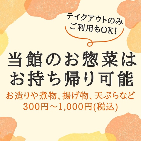 - 【食品ロス対策にご協力ください】当日利用可能! 5/15より、お惣菜持ち帰りサービスを始めました。