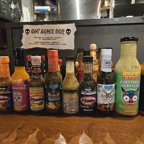 メキシコ料理に欠かせないホットソースどれも異なった風味を料理にたしてくれる。是非試してみて