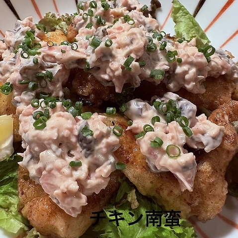 柔らかい鶏天にたっぷりの自家製しば漬けタルタル。開店当初からの人気商品です。