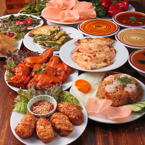 4,980円~のコースでは50種以上の飲み放題や当店自慢のナンが13種類から選べて食べ放題!