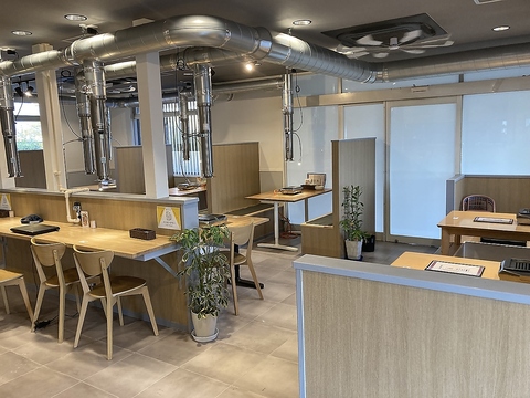オープンなカウンター席や、テーブル席もあり、友人や家族と楽しいひとときを過ごすのにぴったり。大きな窓から自然光が差し込み、明るく開放的な雰囲気を演出しています。こだわりのインテリアが心地よさを引き立て、焼肉を楽しむのにぴったりの居場所です。特別な食事をゆっくりご堪能ください。