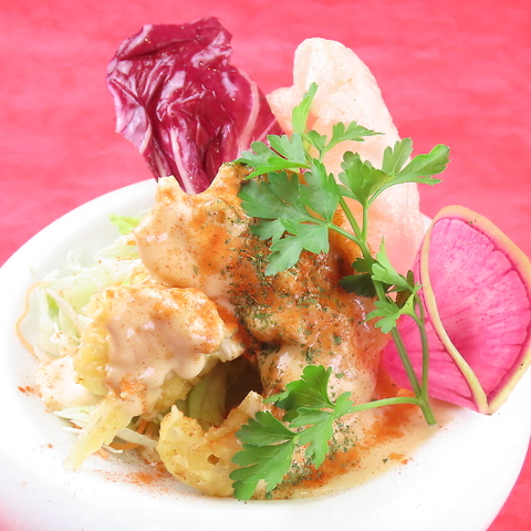 ジューシーな鶏肉に特製のタルタルソースが絶妙に絡み合う絶品料理です!揚げたての鶏肉は外はサクッと中は柔らかく、タルタルソースのコクと酸味が絶妙にマッチ◎一口食べれば、南蛮の甘辛さとタルタルのクリーミーさが口の中で広がり、食欲をそそります。お酒のおつまみとしても最適です◎ぜひ一度お試しください!