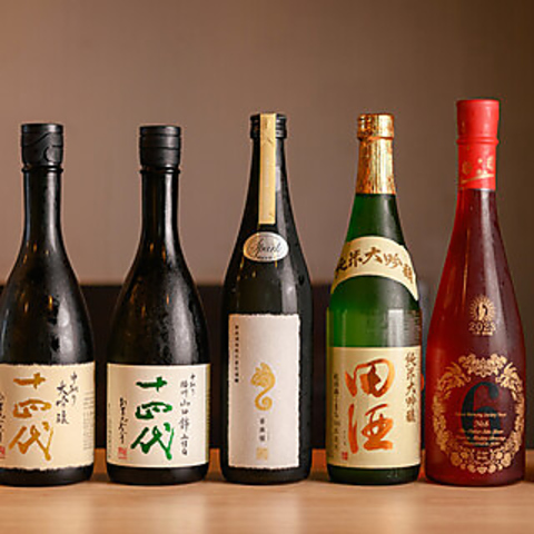 「十四代」「森伊蔵」など、手に入りにくいお酒が揃い、特別な一杯をプライベートでじっくり味わえます