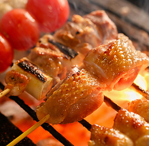 日によりますが高級地鶏“真田丸”を中心に、全国各地の地鶏や銘柄鶏を使用した串焼きが楽しめる【山鶏】。妥協を許さない仕入れで、美味しさには自信を持っております。一つひとつ丁寧に手打ちした串は、備長炭でじっくりと焼き上げるため、香りも抜群。特に人気の「白レバー」は、濃厚でとろける味わいがたまりません。