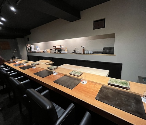 【由緒正しき、和のテイストが黒く鮮やかに光る】ブラックを基調としたシックな空間が、上品な雰囲気を演出。雰囲気から料理への期待感が膨らみ、鮨Sakuraを魅力に引き込まれていきます。カウンター貸切は5名様から8名様、店舗貸切は最大12名様まで承ります。お電話またはリクエスト予約にてお気軽にご相談ください。