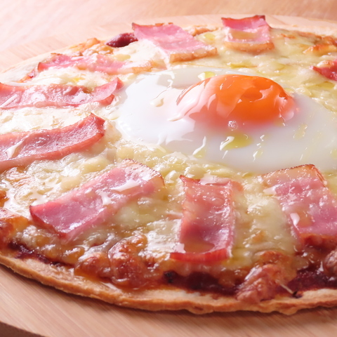 アルザス風ピッツァをアレンジしました。クリスピー生地でお勧めです。