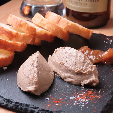 大山鶏と生クリームを合わせた柔らかいペーストをイチジクジャムと共にメルバトーストに乗せてお召し上がりください。