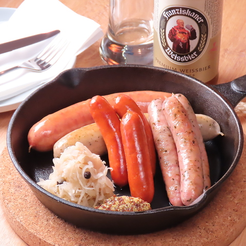 特注グリルソーセージ盛り合わせ・フランクフルターブルスト・ヴァイスブルスト・ニュルンベルガー・チョリソー