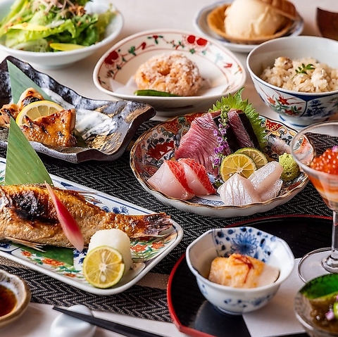 高級魚のどぐろ、豊洲直送の鮮魚、岐阜県の清流美どりに舌鼓。高級魚である「のどぐろ塩焼き」をはじめ、豊洲市場から届く鮮魚をいかしたお造りや旬の1皿など季節ごとの味わいをお愉しみいただけます。また、岐阜県の指定農場から直送されるブランド鶏【清流美どり】を使用したお料理もおすすめ。