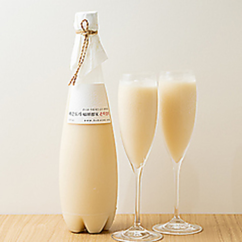 まるでシャンパンのような爽やかな口当たりのマッコリは、合鴨農法で生産された100%国内産の新米から造られる、家釀のようなドリンク。自然に発生する天然の炭酸が清涼感と味わいを高め、飲みやすさを与えてくれます。ぜひシャンパングラスでお楽しみ下さい!