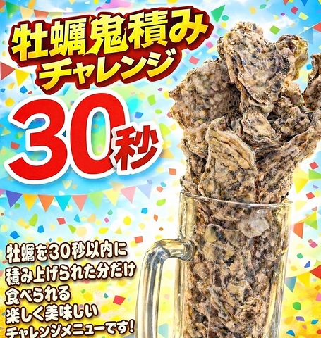 牡蠣を30秒以内に積み上げられた分だけ食べられる楽しく美味しいチャレンジメニューです!☆1,980円☆