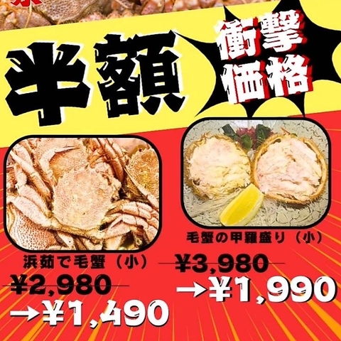 毛蟹半額フェス開催中です!「BAR DIOS」「北の鬼遺産 駅前店」「北の鬼遺産 五稜郭店」が対象です!