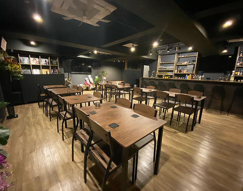 【19時OPEN】店内全体のおしゃれな雰囲気が結婚式2次会や会社宴会に最適です。飲み放題プランもご用意しており、貸切は最大50名様まで受け付けております。50名以上の大規模なご宴会も、事前にご相談いただければ対応可能ですのでお気軽にお問い合わせください。様々なシーン・集まりにも寄り添う空間をご提供いたします!