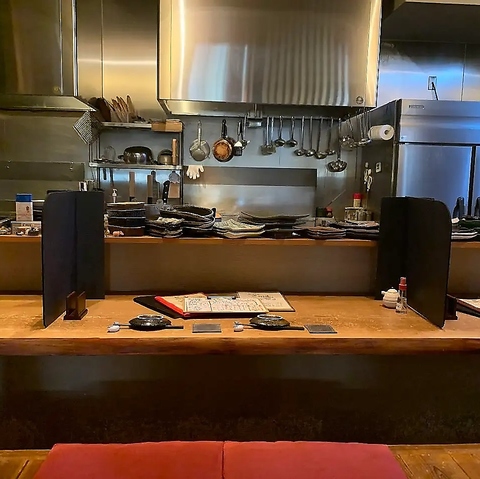 調理風景を五感で楽しめるカウンター席。お一人様やデートで、臨場感あふれる贅沢な時間をご堪能ください。