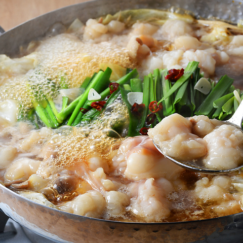 北海道産にこだわったプリプリな牛もつを使うもつ鍋。2日間かけて作る自家製の醤油・味噌・塩・チゲの4種スープでご堪能下さい☆