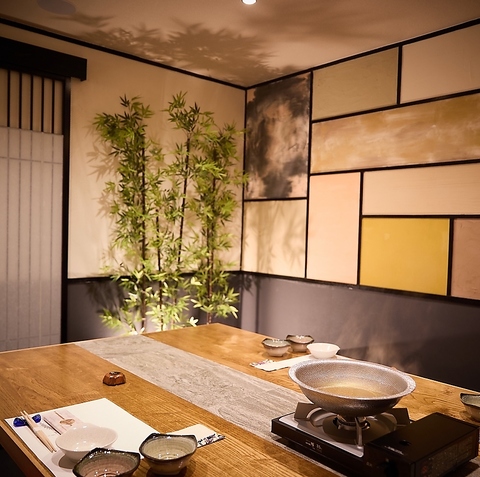 和のモダンな雰囲気が漂う店内は、外の喧騒から離れているような空間。デートや記念日などにもおすすめです。大切な方とのお食事や接待などにも最適です。