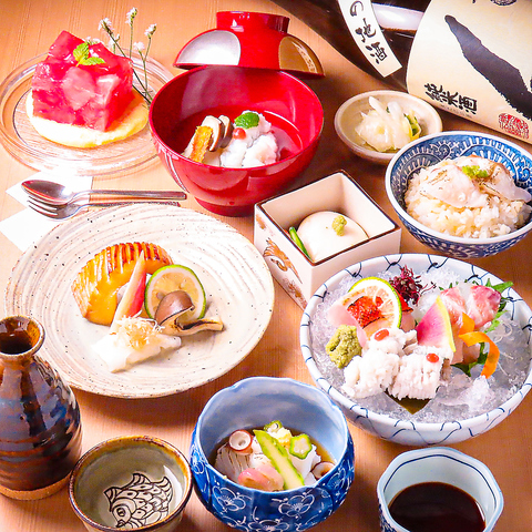 毎朝届く厳選された鮮魚のみを使用!素材本来の味を引き出す調理法を心がけ、手間ひまをかけて上質なお料理をご提供いたします。各種宴会・接待にオススメのコースなど★季節の旬の海鮮をお楽しみ下さい!