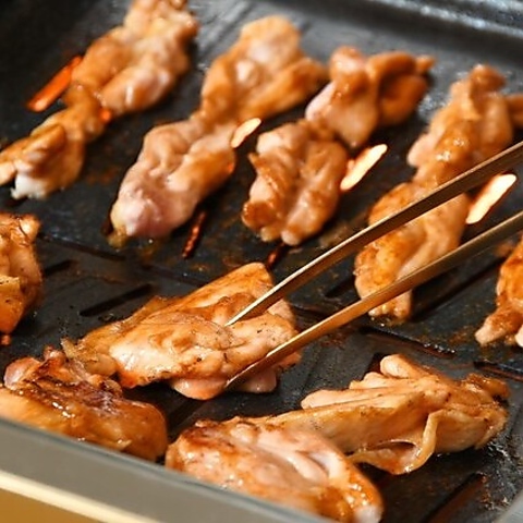 個室限定で楽しめる鶏みそ焼き。秘伝の自家製みそで味つけした他店では味わえない鶏司ならではの鶏みそ焼き。名古屋コーチンのももやせせり、ふりそでなどを目の前で焼き上げます。