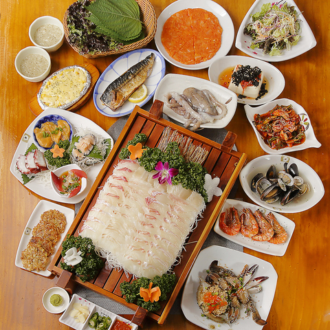 チヂミやホヤ、アワビ等の海鮮料理のコース☆8800円(税込)