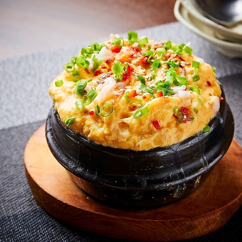 ケランチムは、韓国の家庭で親しまれているふわふわの蒸し卵料理。出汁のきいた優しい味わいと、とろけるような食感が特徴で、ご飯のお供にもおつまみにもぴったりです。石鍋でアツアツのまま提供されることが多く、立ち上る湯気とふくらんだ見た目が食欲をそそります。シンプルながら奥深い、心も温まる韓国の定番メニューです。