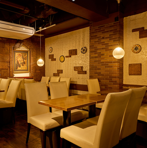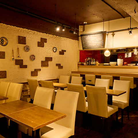 | 貸切 | 36名様×1 | アンティークなレンガに白を基調にした間接照明の明かりがとても居心地よい空間となっております。貸切のご相談も◎ |