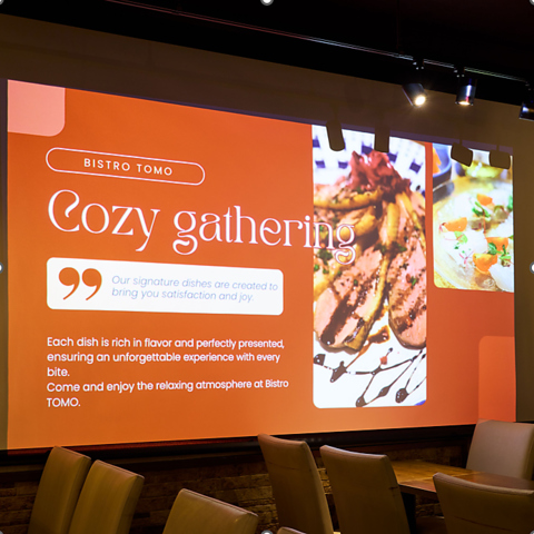 | テーブル | 6名様×4 | 宴会でわいわい楽しめるお洒落な雰囲気の店内。歓迎会や送別会等各種宴会はもちろん、結婚式の二次会、誕生日会、記念日、女子会にもおすすめです! |