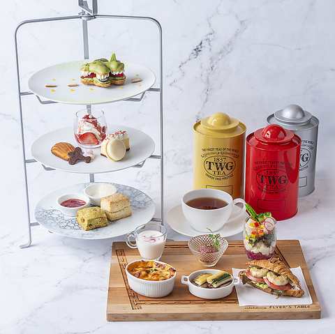 人気のアフタヌーンティーがリニューアルいたしました。乾杯のノンアルコールスパークリングワインが1杯付、3種のTWG Teaの紅茶とドリンクバーもご利用いただけます。