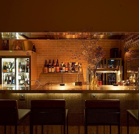 天井も高く、席もゆったりとして落ち着いた贅沢空間。オシャレな雰囲気は、カウンターでしっぽり、デートからパーティーまで様々なシーンで活用頂けます。貸切のご予約も承ります。着席で30名様、立食で60名様まで可能です。お気軽にご相談下さい。ウエディングの二次会や各種パーティー等にもご利用を頂いております。