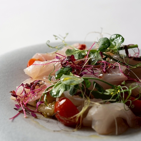 長崎県産カンパチを香ばしく炙り、脂の旨みと爽やかな香りが広がる贅沢カルパッチョ。