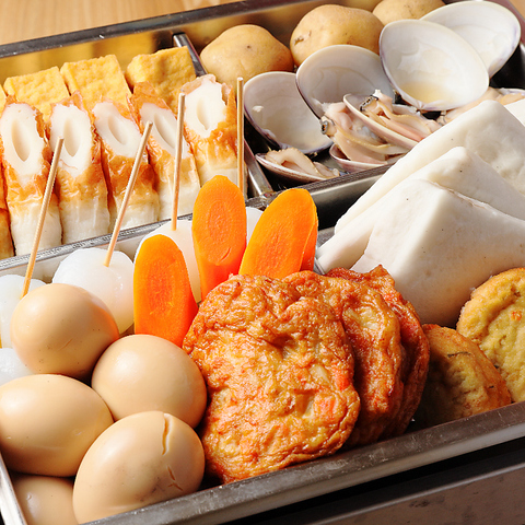 はまぐり・あさり・帆立など、貝の旨みを丁寧に重ねた特製の“貝出汁”でじっくり煮込む自慢のおでん。素材の味を優しく引き立てつつ、貝ならではの深いコクと香りが染み渡り、一口ごとに旨みが広がります。他では味わえない上品で奥行きのある味わいで、日本酒との相性も格別。体に染みる極上の一品です。