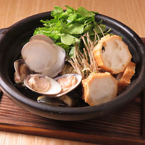 貝出汁で作るせり鍋は他で味わえない逸品!!