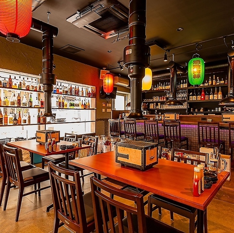 店内を照らすカラフルな提灯に壁一面にずらっと並ぶお酒の瓶が店内の明るい雰囲気をより一層引き立てています。ご家族でのお食事やお仲間との宴会、お仕事終わりのサク飲みまで幅広いシーンでぜひご利用ください。また深夜まで営業しておりますので二軒目、三軒目のお店としても◎焼肉をなさらずとも居酒屋としてのご利用も大歓迎です!
