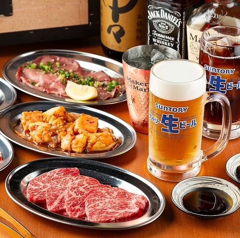 牛タンスジ・人気のホルモンミックス、ハラミ、豚カルビなどをを含んだ大満足の全11品+飲み放題です!