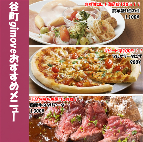 「安くて旨い」を体現する、gimove自慢のマルゲリータ。外はカリッと、中はモチモチの生地に、とろ~りチーズとトマトソース、バジルの香りがたまらない王道の味です。このクオリティで900円という驚きの価格を実現!お食事のメインとしてはもちろん、お酒のおつまみとしてもシェアしやすい看板メニューです。