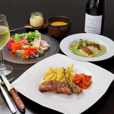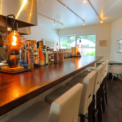 恵比寿駅近くの一軒家レストランでゆっくり食事を楽しむ時間。当店では、カウンター9席はキッチンを囲むようにご用意。調理風景を楽しみつつ、お食事をご堪能ください。その他2名様テーブル2卓と4名様テーブル1卓、6名様テーブル1卓、2名様テラス席1卓をご用意。お子様連れの方もぜひお越しください。