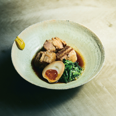 とろけるほど柔らかくなるまでじっくり煮込んだ豚バラ肉を、甘辛い特製ダレで仕上げました。脂の甘みとタレのコクが絶妙に絡み合い、口いっぱいに豊かな旨みが広がります。お酒との相性も抜群で、リピーター続出の人気料理です。
