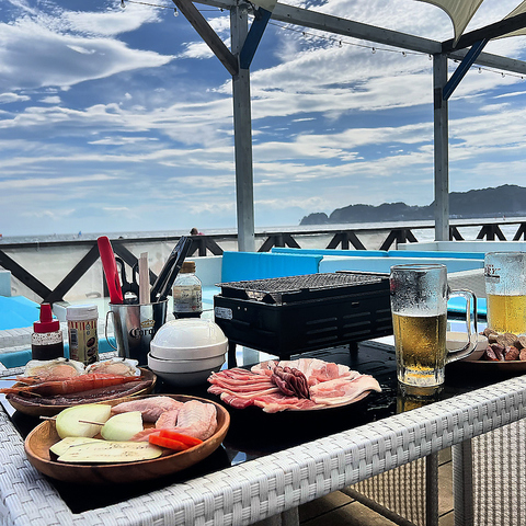 手ぶらでBBQ(バーベキュー )☆【BBQセット+飲み放題】のお得なプラン☆!お洒落なロケーションで夏の海を漫喫♪女子会から夏宴会まで、2024年最高の思い出を♪各国料理のシュラスコなどのバーベキューでご用意いたします。