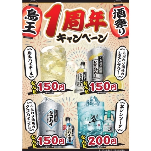 皆様のおかげで1周年を迎えることができました!日頃の感謝を込めて、【鳥王 酒祭り】を開催いたします!