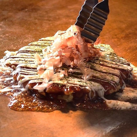 東京のお好み焼きとは明らかに違う創業25年の伝統のフワッフワのお好み焼き1.空気を含ませる!2.焼く時は絶対に抑えない!3.ワインに合う特製ソース!4.気兼ねなく通える価格!4つのこだわりを大事に絶品のお好み焼きを提供!