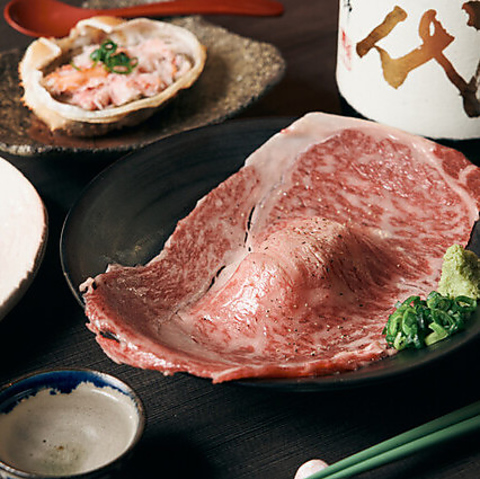 最高級の黒毛和牛を使用。水にもこだわっており、天然炭酸水でご提供。6種の薬味で召し上がれ。