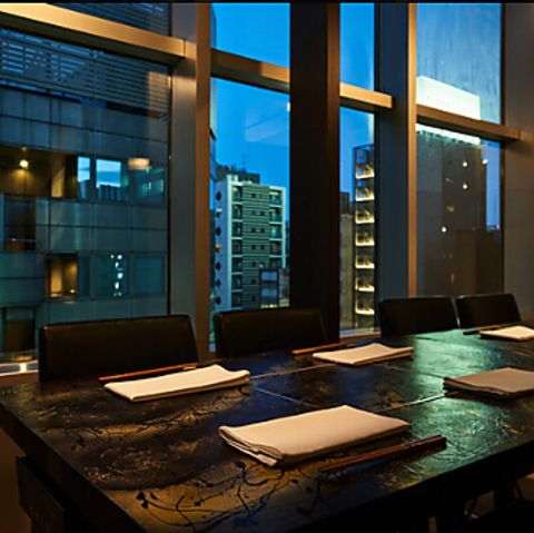 【個室席】2~4名様の個室が2室。繋げて6~8名さまでのご利用も可能で、個室席は接待でのご利用におススメのお席となっております。プライベートな空間で贅沢な食事をお楽しみいただけるお席となっておりますので、記念日や会食にぜひご利用下さいませ。