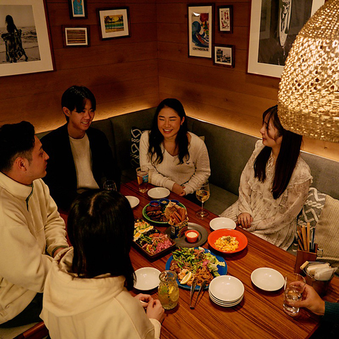 15名様~20名様にて、店内奥の半個室席をフロア貸としてご利用いただけます。会社でのご宴会や、お仲間との飲み会などにピッタリの空間です。また、店舗貸切は要相談で60名様~70名様の大型宴会も可能です。少人数様でのご利用でも、ゆったりくつろげる5名掛けのソファ席で南国気分が味わえます♪