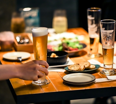 ソファー席含めて余裕を持った席配置になっており、料理も様々なジャンルのアラカルトをご用意しています。またドリンクの種類も豊富に取り揃えているので、同僚やお友達と楽しく盛り上がれる空間になっています。