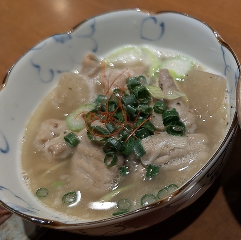 素材の味を活かした魅力的な一品でございます。柔らかなもつが、上品な塩味のスープと絶妙に絡み合い、ネギやごまの風味がさらに食欲をそそります。寒い日に体を温めるのはもちろん、ビールとの組み合わせも絶品です。