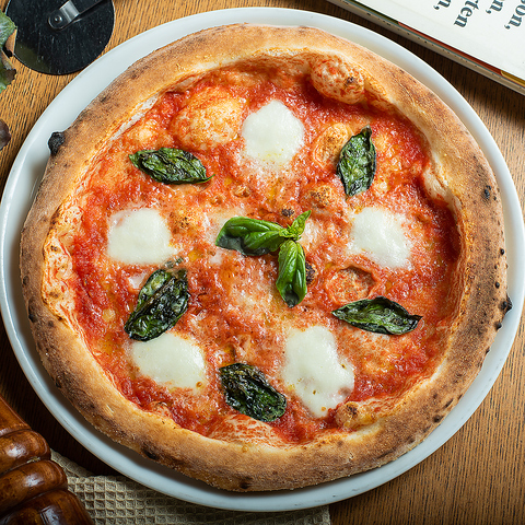 トマトソース、モッツァレラ、フレッシュバジル